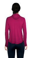 Our new Pinnacle Base Layers with a ponytail opening at the back of the hood for comfortable wear with the hood up.